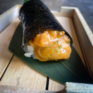 For the adventurous eater, the finest Hokkaido Uni from Japan, signature sushi rice wrapped in dried seaweed.