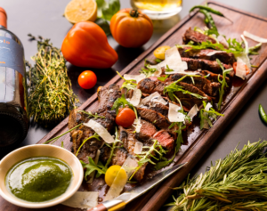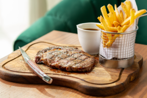 Price: AED 125 per person inclusive of 300 grams of steak with fries, caramelized onions, mushroom and a choice of sauce.
