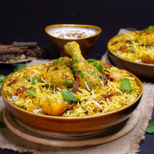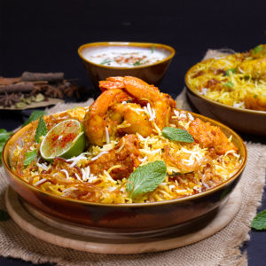 All these biryanis are served with raita, a condiment made of mildly spiced yoghurt.